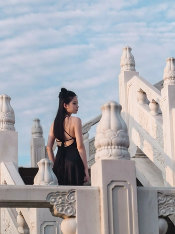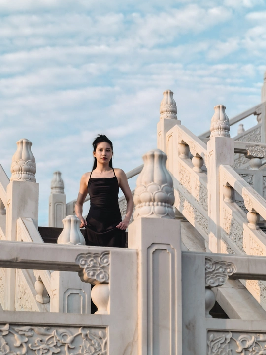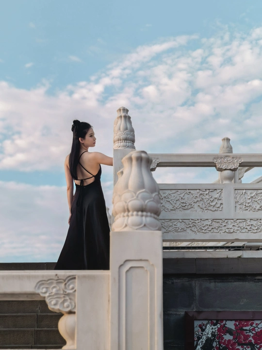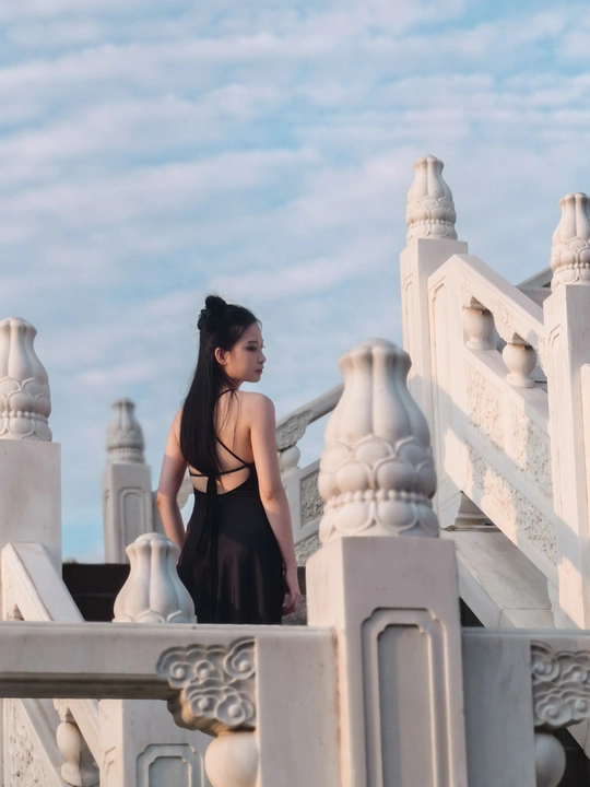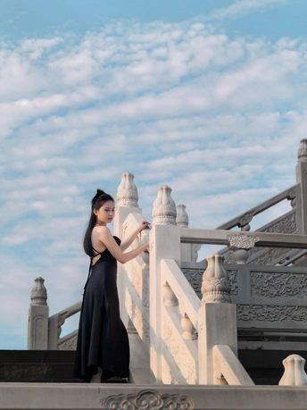 云很淡,风很轻,黑裙姑娘立于石阶,背影是诗,侧颜是画,岁月在白玉雕刻里,悄悄把故事埋下 。 拍摄器材:华为m60Pro 拍摄场地:南充清辉阁