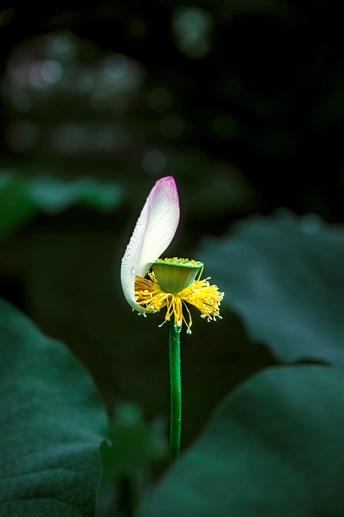 ~~在这幅《愛之凄美》的画面里,残荷仅余最后一瓣,却仍以柔弱之躯,为新生的莲子撑起一方天地。它似一位深情的守护者,不顾自身凋零,执着地遮风挡雨。那花瓣上的水珠,是它不舍的泪,更是对莲子无尽的爱。生命的轮回中,这般凄美之爱,如暗夜萤火,微弱却璀璨,诉说着奉献与坚守,让人心生敬畏与动容。本片拍摄于四川省江油市李白纪念馆内荷展之一。