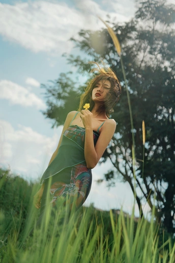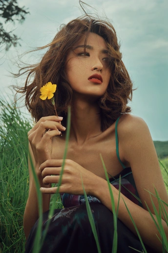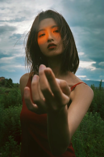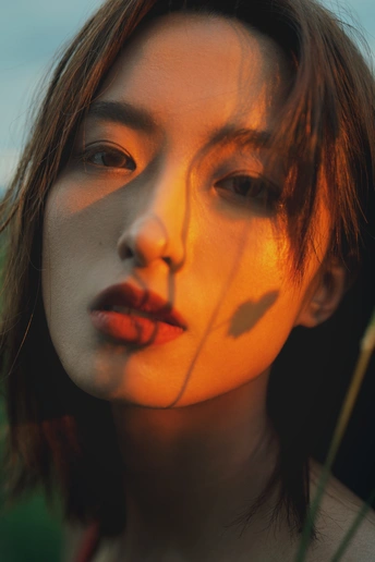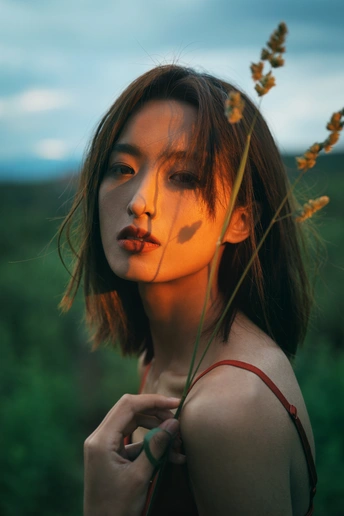 夕照流金熨过左颊, 将睫毛染成暖麦芒; 暮霭蓝霜漫上右肩, 在锁骨结出冰星斑。 风推云幕时—— 暖光在唇峰融雪, 寒影于颈窝筑巢。 🌾 草浪俯身拾取散落的天光 📜 帽绳系住半页未写完的暮色 🌌 掌纹间游走着明暗的溪流