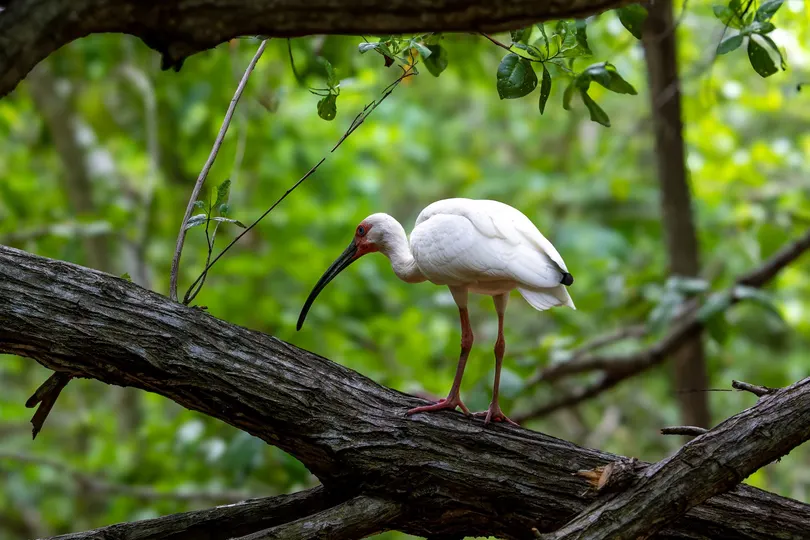 美洲白鹮(huán) (英文名:American White Ibis,学名:Eudocimus albus),是鹈形目鹮科美洲鹮属的鸟类。中等体型的涉禽,显著特征是白色的羽毛、长长的向下弯曲的喙,以及粉红至红色的裸露面部皮肤和腿。分布于美国东南部、加勒比海地区以及南美洲北部沿海地带。历史上是北美最丰富的涉禽之一,至今仍维持着大规模的区域性种群。