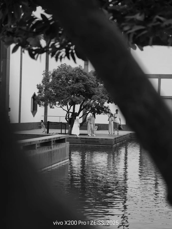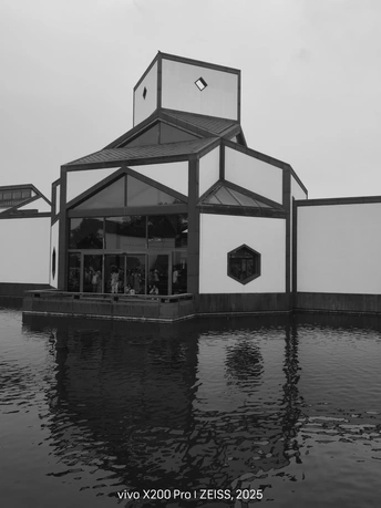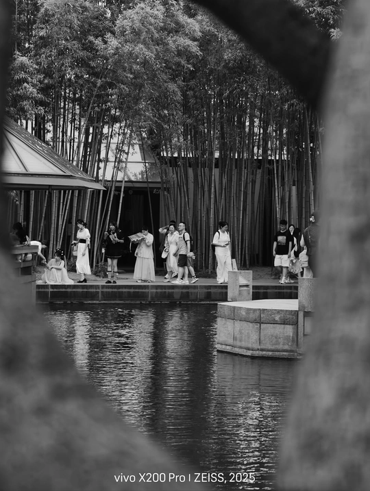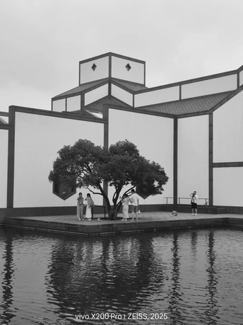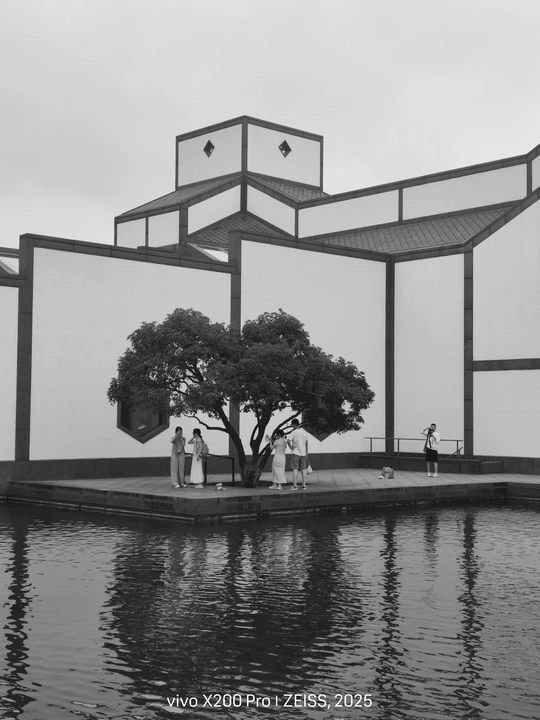 在苏州博物馆,黑白影像晕染开江南诗意。建筑如墨笔勾勒,临水而立,窗棱藏着古韵。游人穿梭,似在旧时光里踱步,竹影、树影、建筑影,交织成一幅流动的水墨长卷,每一处留白都盛满历史与当下的对话,诉说着东方美学的静谧与悠长 。