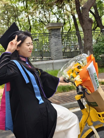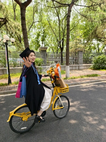 脚踩自行车,车轮悠悠转动,鲜花放在车框,缤纷的色彩,如同青春最绚丽的梦,阳光洒满白杨大道,散发淡淡清香!
