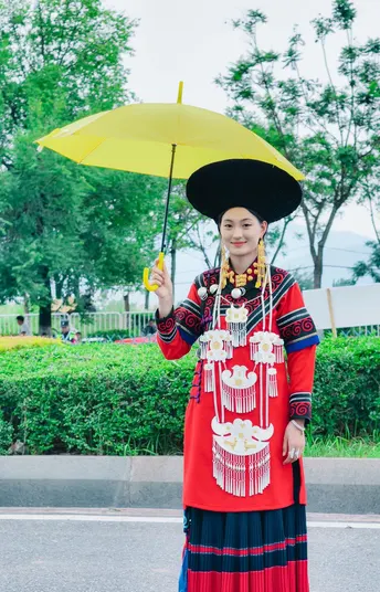 夏日的航天大道浸在明丽的日光里,正值火把节非遗展演热潮,来自凉山各县身着盛装的彝族姑娘们如时光里的美学符号,以最鲜活的姿态,将一场流动的视觉盛宴铺展在路上。
