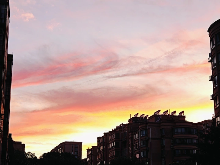这个颜色调得有点失真但我喜欢每天都能等到这样艳丽如画般的天颜!