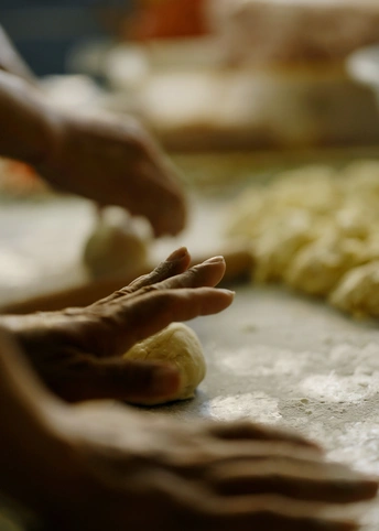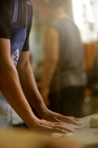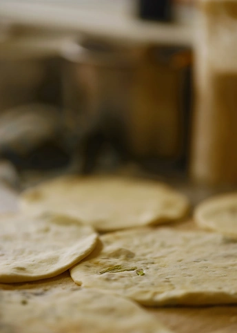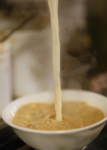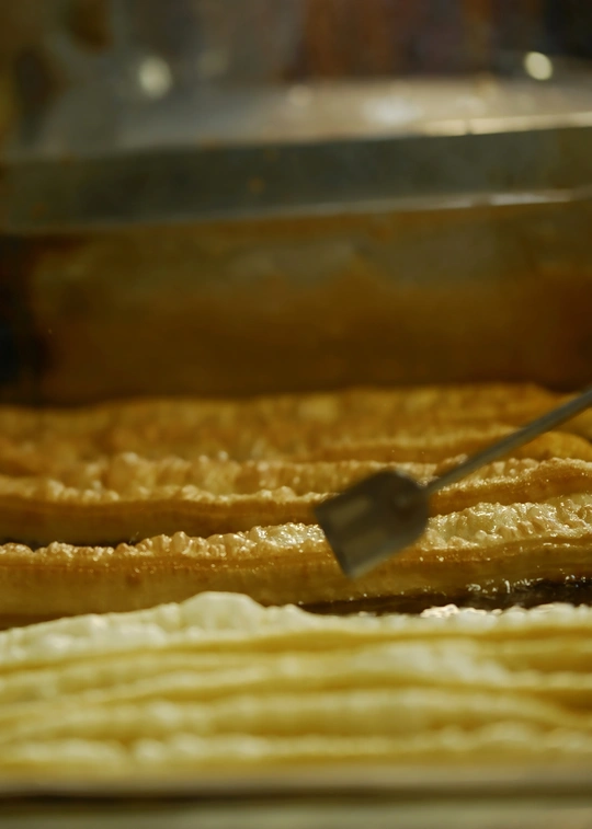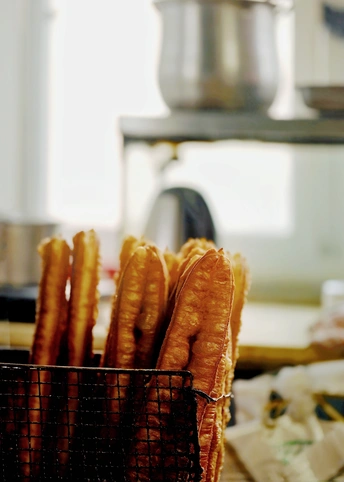 嵊泗的大饼油条,与别处大致相同。 菜园菜市场对面的这家张记,也做着大饼油条豆浆馒头的早餐营生。 知道我们喜好这一口,当地朋友推荐了这家店。 我舍弃了酒店的自助餐,一早寻到了这个早餐点儿。 路边一开间,门面很小。窗户前,拥着顾客,络绎不绝。店堂坐满食客,一碗咸豆浆,一个大饼,一根油条,似乎成为一种约定俗成的早餐标配。路边的窗口里,老板娘微笑着,不停地递送出一份又一份的大饼油条。‘油条的香气,在街边散开,我们闻到了一种清香。 大饼,薄薄的,有甜有咸。大饼的品种,却与别处大不相同。里脊肉大饼、梅干菜肉饼、葱油饼和甜饼,成为异于别家的特色。 我吃了油条,才悟出刚才闻到刚出锅油条那种清香的原因:店家用的是新出的油。我食了梅干菜肉饼,松脆绵韧,异香浓郁。看那一碗咸豆浆的制作,令人振奋。沸腾的豆浆,飞流直下,冲泻在盛着紫菜虾皮榨菜葱花的碗里,顷刻间,浆液翻滚,香浪腾腾。 嵊泗的这个小店,做着与别处大致相同的大饼油条。然而,当我停下脚步细观慢尝,却获得了与别处不一样的滋味……