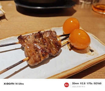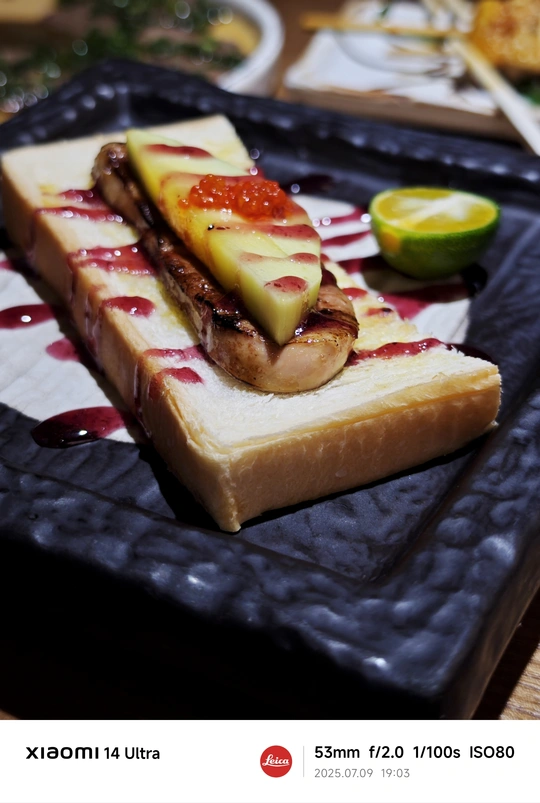 图中美食是提灯,鹅肝吐司,猪颈肉串,牛舌 忙碌一天后,记得要犒劳一下自己