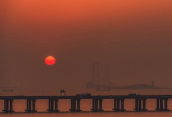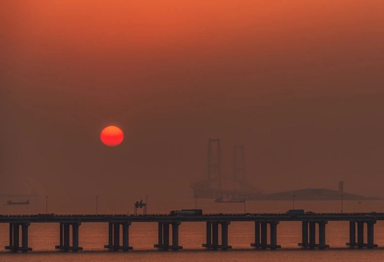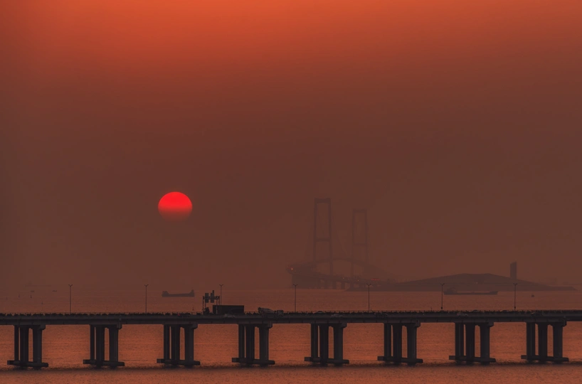 深中通道下的悬日,尽管当时找错了位置,太阳落下的位置有偏差,且天气伴有雾霾,但是只有到此一次的机会,也不容我错过,日落下的深中通道依然是时分治愈的,整个天空和太阳放佛是一个调色盘