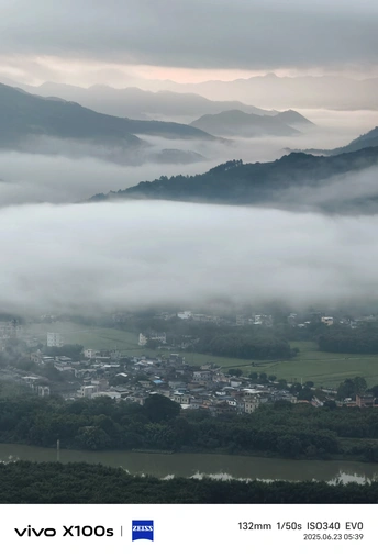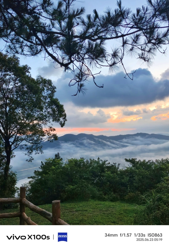 2025年6月23日,摸黑攀至山顶时,晨露已洇湿衣襟。山风卷着雾霭撞来,凉意沁骨,可撞见云海在脚下翻涌成无涯棉浪,便觉一切值得。 天际微光初绽,云隙漏下的金芒,为群峰镀上棱线。山下村落浸在雾里,如古画中淡墨晕染的秘境。我举着手机连拍,身旁同路人亦不言语,只是静静凝视,偶闻快门轻响,便知是 fellow 追光者在定格这份震撼。 待朝阳奋力挣出云窠,光刃将雾霭烫出金边,山野倏然活了。平素被庸常撵着奔忙的我们,此刻在山顶守破晓,才算触到自然的磅礴——确有风景,能碾平心中嘈杂,只余满溢的震撼。这些照片,是山、雾、光与我们共创的馈赠,往后翻看,定能忆起在这山顶,被自然狠狠攥住心神的悸动。