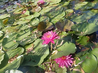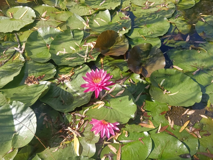 池间睡莲 夏日午后,一池睡莲闯入眼帘,成了最动人的风景。 硕大的绿叶铺满水面,像被精心擦拭过的翡翠圆盘,或平铺舒展,或微微卷曲,承载着细碎光影与枯叶,是独属于夏的斑驳。其间,两朵粉睡莲悄然绽放,花瓣层层叠叠,如细腻的丝缎,从边缘浅粉渐次晕染至花心深粉,金黄花蕊藏于其中,像撒了细碎金粉,在阳光下微微颤动,满是鲜活的生命力。 这一池睡莲,像是时光酿的蜜。没有刻意雕琢的规整,残叶与繁花共生,衰败与盛放同框,却格外和谐。它们守着一方小池,在夏日里兀自美丽,不管有没有人欣赏,都认真地把日子过成诗。 看着它们,心也跟着静了。生活的繁杂被隔绝在外,只剩下这满池的绿意与温柔。原来美好不必奔赴远方,眼前这一隅睡莲池,就藏着夏日最本真的浪漫,提醒我们在忙碌里停下脚步,去打捞那些被忽略的小确幸,感受平凡日常里的诗意闪光 。