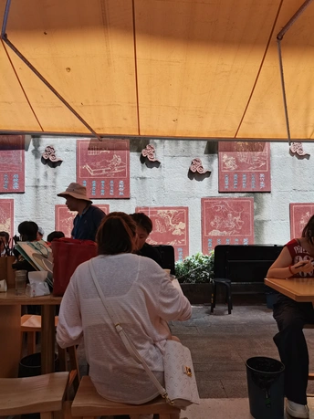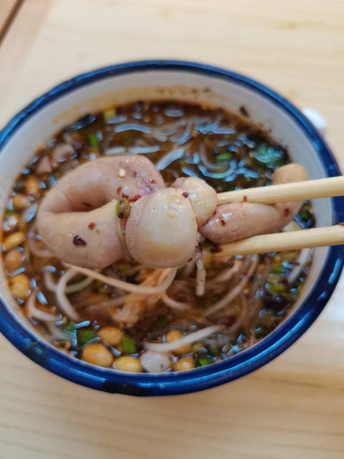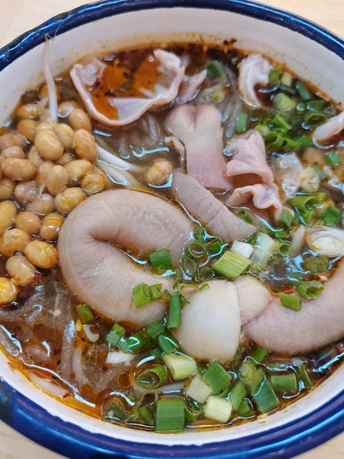 藏在春熙路巷子里的肥肠粉,热到流汗也要吃 在成都春熙路逛到快中暑,偶然钻进大科甲巷的小巷子,40℃高温天,店里店外坐满了人,风扇呼呼吹,汗水还是止不住流,大家却吃得热火朝天 。 💡环境是接地气的路边小馆风格,店内明档操作,自助小料区摆着配菜,泡菜、香菜、葱花随意加,天气原因稍微有点焉。店外支着遮阳棚,墙上刻着传统图案,吃着粉还能感受老成都烟火气,就是天热时坐外面,风扇威力不太够,汗流浃背也得炫完这碗粉! 🍜「招牌肥肠粉!满满一碗,黄豆给得超大方,颗颗饱满酥脆,咬下去“咔嚓”响。结子个头超大,吸满汤汁,一口爆汁超满足!不过肥肠量不算多,而且吃着带点苦味。粉条是传统红薯粉,Q弹爽滑,裹着红亮亮的汤汁,酸辣过瘾。豆芽打底,脆生生的中和了粉的厚重,一口粉一口豆芽,清爽又解腻。 🌶️自助小料区~ 💰性价比没话说,团购9.9元一碗,在春熙路商圈算很亲民。分量扎实,男生吃能管饱,女生吃甚至得剩点,逛累了来一碗,补充体力又过瘾。 🏙名称:「彭满满肥肠粉(春熙路店)」。 📍位置超好找,锦江区春熙路街道大科甲巷京都大厦一楼 🚎地铁2号线春熙路站D口出来,步行230米就到,