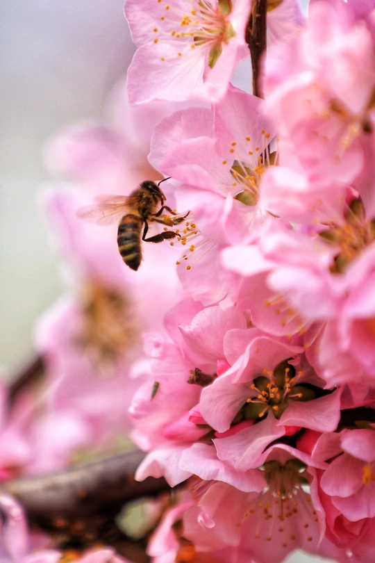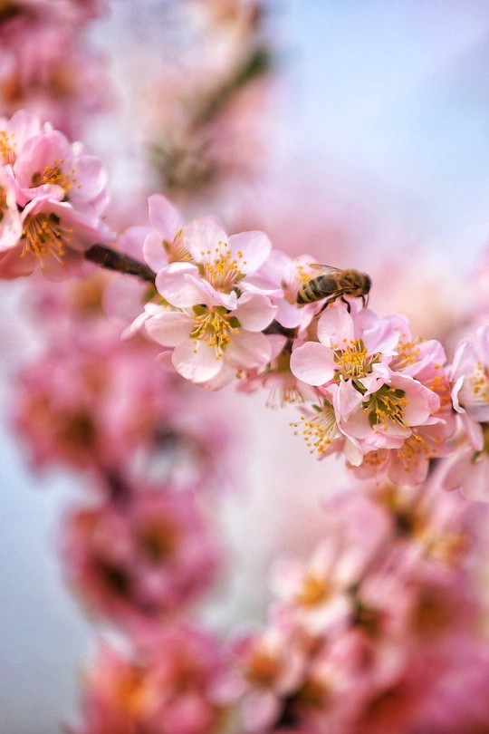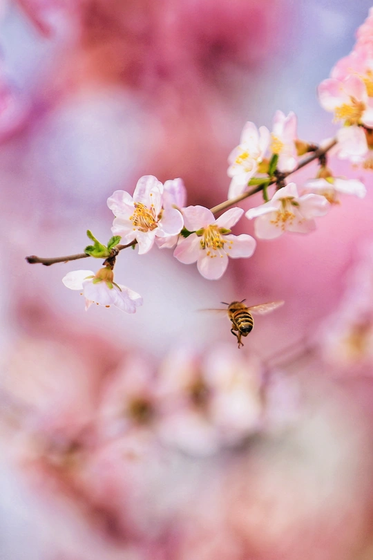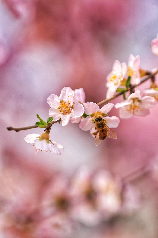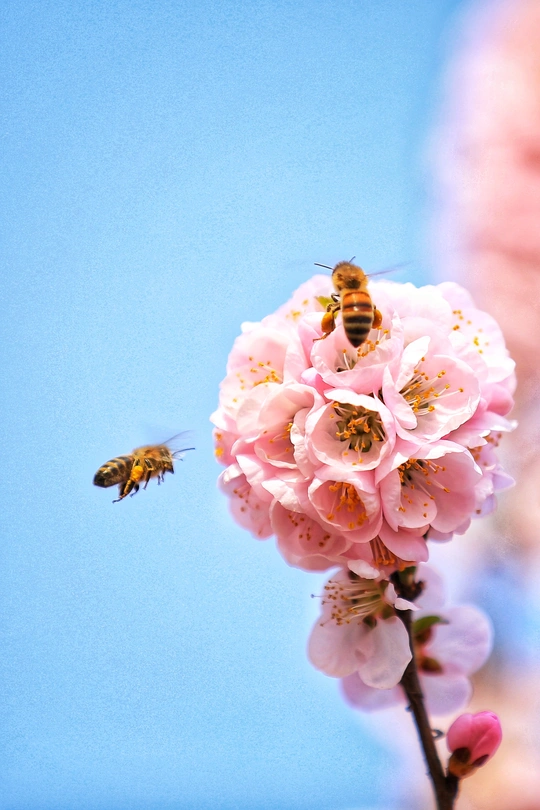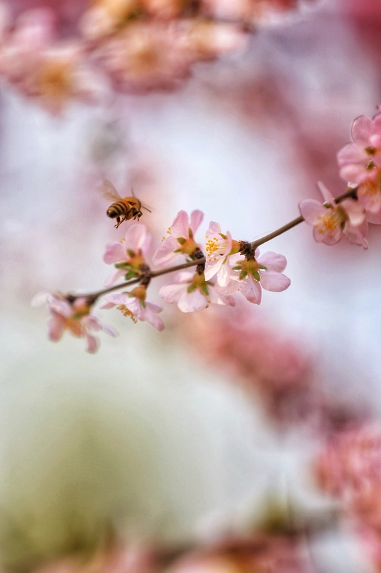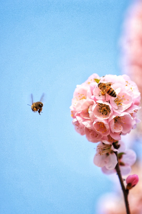 图一这张照片捕捉到了蜜蜂在花丛中飞舞的瞬间,整体呈现出一种柔美、温馨的氛围。以下是一些具体的评价和建议: 光影 :光线较为柔和,营造出了一种朦胧的美感。但可以尝试利用更具有方向性的光线,例如侧光或逆光,来突出花朵和蜜蜂的轮廓和质感,增强画面的立体感。 构图 :构图基本合理,花枝占据了画面的一部分空间,蜜蜂的位置也相对恰当。可以考虑稍微调整拍摄角度,让蜜蜂处于画面更吸引眼球的位置,例如三分法交点附近,以增强视觉冲击力。 色彩 :色彩和谐统一,粉色调营造出浪漫氛围。可以尝试在后期处理中略微调整色彩饱和度,使花朵的颜色更加鲜艳,蜜蜂的细节更加突出。 主题意义 :照片展现了蜜蜂与花朵之间的互动,传递了自然和谐的主题。可以尝试通过更独特的视角或更具创意的构图,来深化主题,例如,捕捉蜜蜂采蜜的瞬间,或利用景深突出蜜蜂与花朵的关系。 氛围 :照片成功地营造了一种温馨、浪漫的氛围,让人感受到春天的气息。 思想深度 :照片在思想深度方面还有提升空间。可以尝试通过照片来表达更深层次的思考,例如,人与自然的关系,生命的意义等。可以通过后期增加一些有意思的元素。