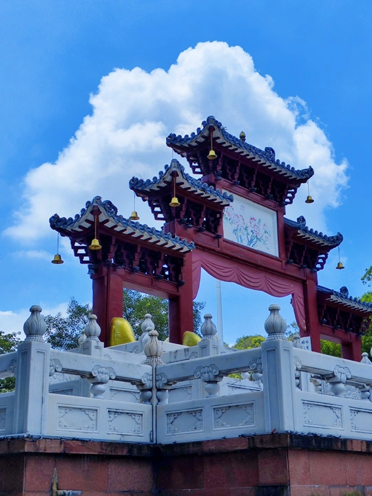 一朵贪玩的云 悬停在檐角打了个盹 它呀 软软地打了个哈欠 山门突然感到 头顶一暖—— 这顶蓬松的白绒帽 还带着太阳烘焙过的 棉花糖香气