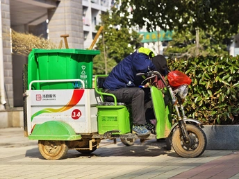 就地小憩一下的环卫工人