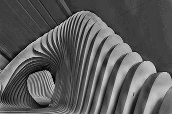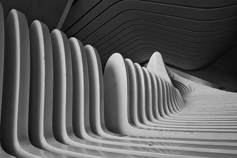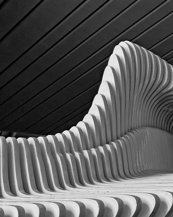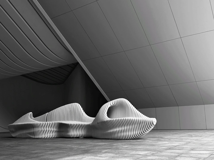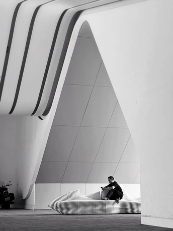 钱塘湾艺术中心的大厅充满了简单,流畅的线条设计感,特别是大厅中央摆放的一张休闲座椅💺的抽象设计及几何线条很有观赏性。