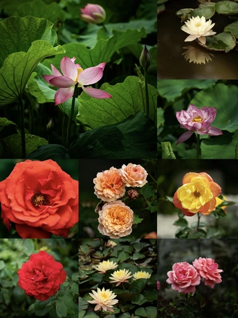 盛夏的画布上,莲与玫瑰正进行着一场关于美的对话。 粉荷擎着翠盖,在风里舒展瓣尖的温柔;睡莲卧于清波,将奶白、鹅黄的梦揉进涟漪。 而玫瑰呢?炽红、暖橙、柔粉……每一抹色都是热烈的告白,卷边的花瓣里藏着日光的温度,层层叠叠,把夏的馥郁酿成了诗。 它们在时光里绽放,或清雅,或明艳,每一朵都是季节写给世界的情书,让路过的人,不小心就醉在了这满园芬芳里。