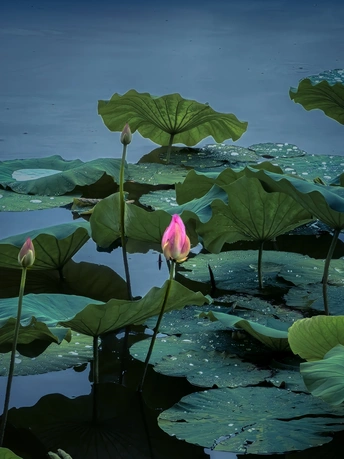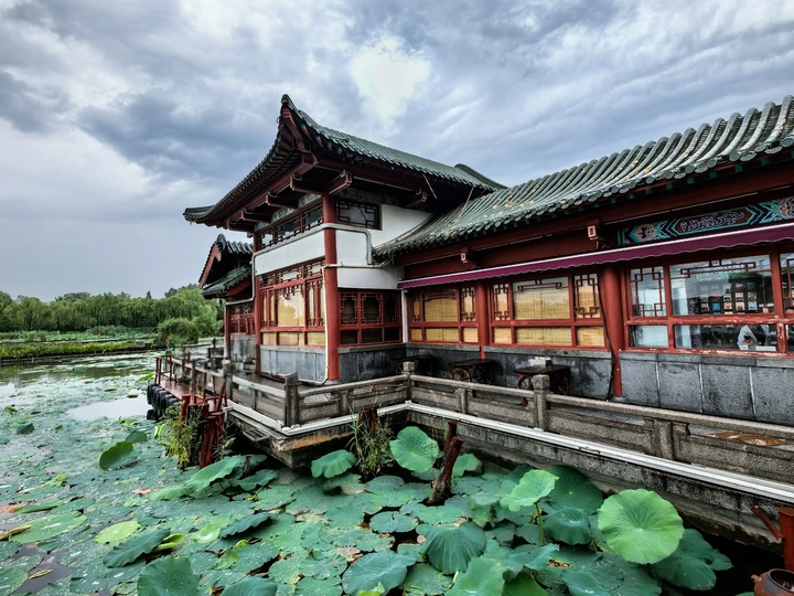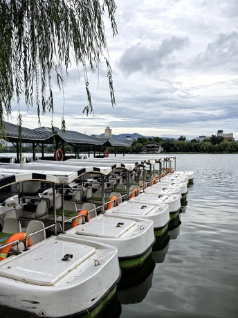 在大明湖,拍摄了雨后的画舫,荷花和停靠在岸边的游船,展现雨后大明湖的美丽和清新。