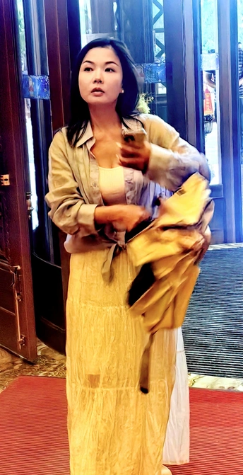 这位姑娘第一次步入金色大厅,对大厅里富丽堂皇的景色惊叹不已。