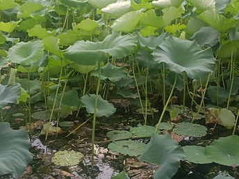 荷田绿意 踏入荷田,满眼是硕大的绿荷叶,如绿伞撑开在水面。茎秆笔直撑起叶片,或高或低,错落成独特景致。水面浮着小荷叶,偶有枯叶点缀,透着自然的生息,暑气似也被这绿意消解,心随之沉静。