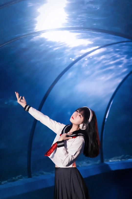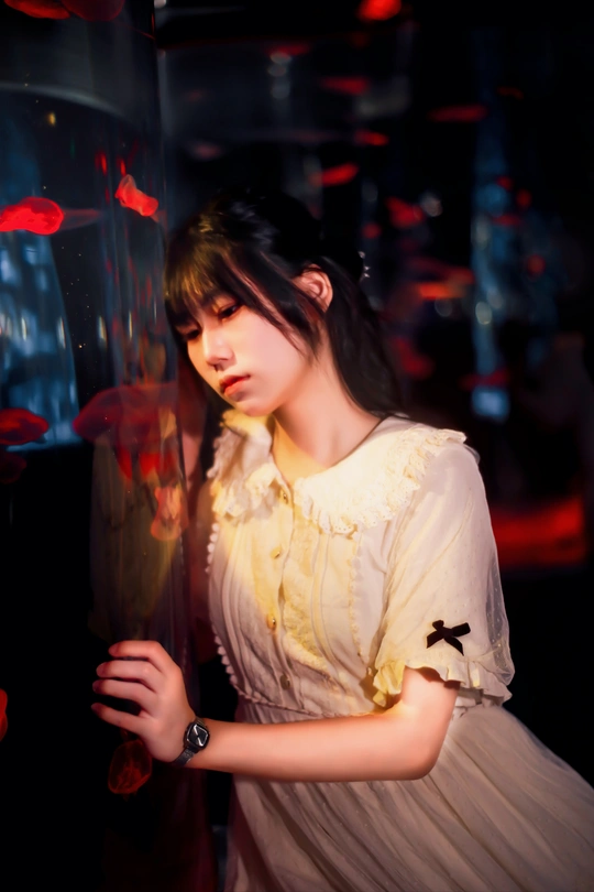 柔和的水波纹光在少女的脸颊上跳跃,梦幻般的光影效果真的很绝。