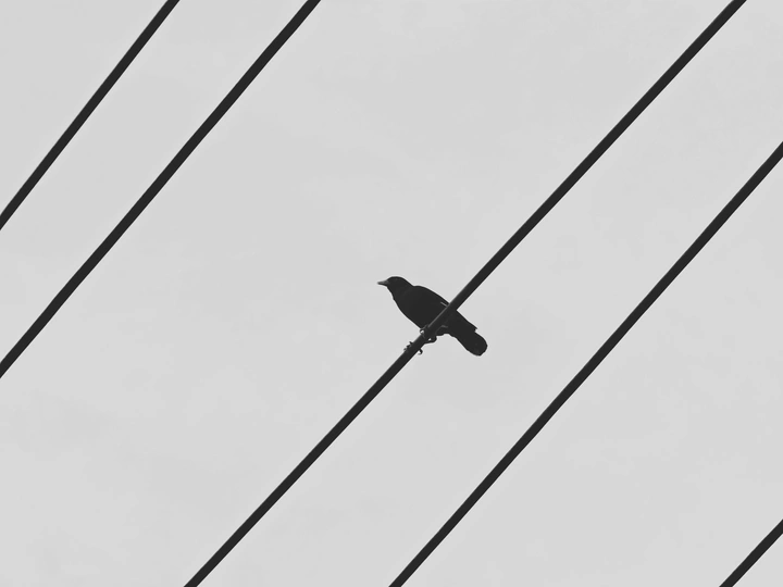 静谧时刻,黑白之间。一只鸟,一根电线,天空作画布,安静得仿佛能听见风的轻语。在这简单的线条里,我找到了片刻的宁静