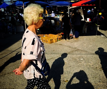 一位银发老人悠闲的走在街上,闲庭信步优雅而充满自信