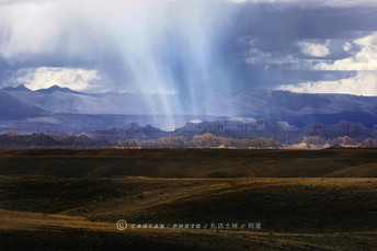 在阿里扎达土林,风雨是天地派来的信使。 乌云翻滚如墨,却漏下几束光瀑,像神明垂落的丝带,轻触大地褶皱。土林沉默伫立,亿万年的故事在风雨里低吟,每道沟壑都藏着时光的密语。 风卷着沙,掠过旷野,似在叩问苍穹;雨线斜织,朦胧了远山轮廓,让天地化作一幅水墨长卷。这里的风雨,不是喧嚣的过客,是与土林共舞的精灵,以空灵之姿,诉说着高原的大气与苍茫,让每一眼凝望,都坠入这天地编织的梦幻秘境 。。。
