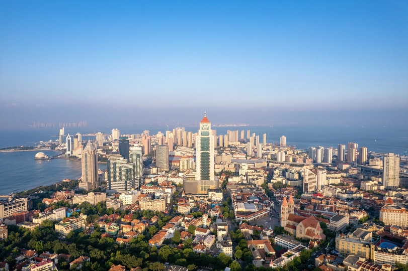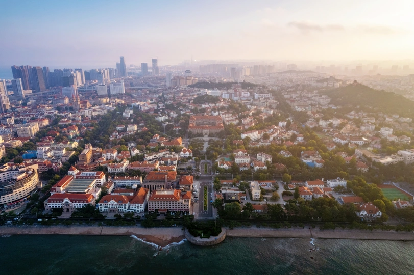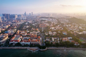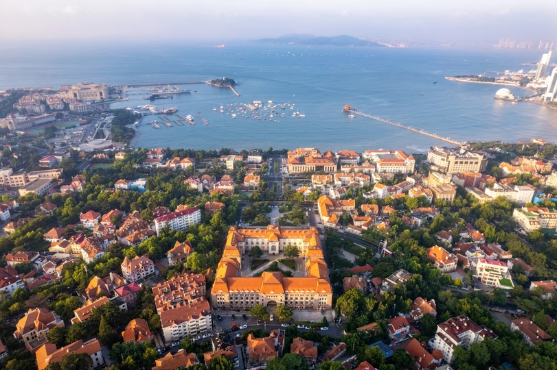 #风光# #航拍# #青岛# #碧海蓝天# #红墙碧瓦# #古今同框# #青岛航拍#