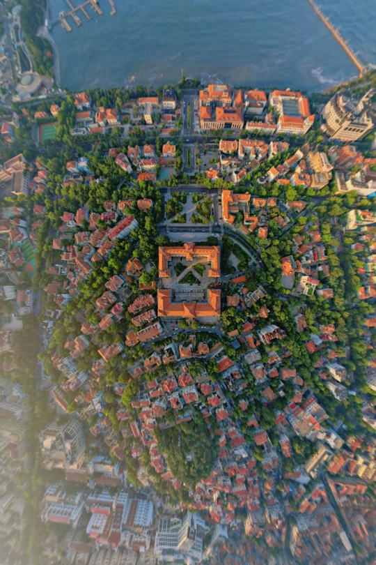 航拍视角俯瞰老城区,红瓦绿树碧海蓝天 1897年,德国以“巨野教案”为借口强占胶州湾,次年签订《胶澳租借条约》,青岛成为德国在远东的军事与贸易据点。 德国人按照欧洲城市标准规划青岛,老城区的建筑风格形成独特的“红瓦绿树、碧海蓝天”风貌。 🔑 代表建筑: 青岛火车站,总督府,圣弥厄尔教堂…… 这次拍到的是以总督府为中心的老城区中轴线,清晨的第一缕阳光照亮世界,一栋栋红房建筑讲述着时间的故事。 建议起飞地点见最后一张图停车场。这里起飞可以顺带拍摄栈桥和小青岛公园。 #红瓦绿树碧海蓝天 #一起去看大海 #有海的城市 #青岛旅游 #青岛航拍 #青岛拍照机位 #青岛老城区 #青岛胶澳总督府