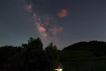 初次尝试双窄银河 底图曝光30秒七张拼接 人物单张曝光6秒 光圈 F1.4 SonyA7R3 Sony24F1.4