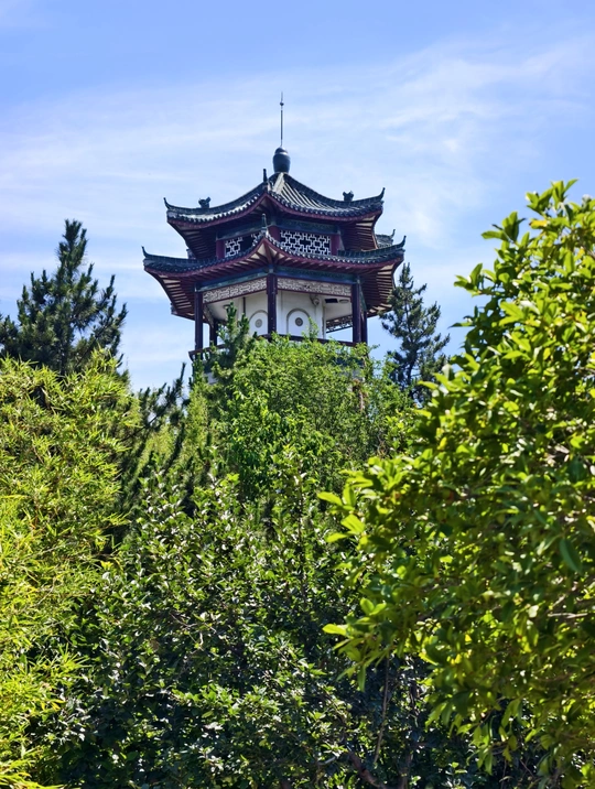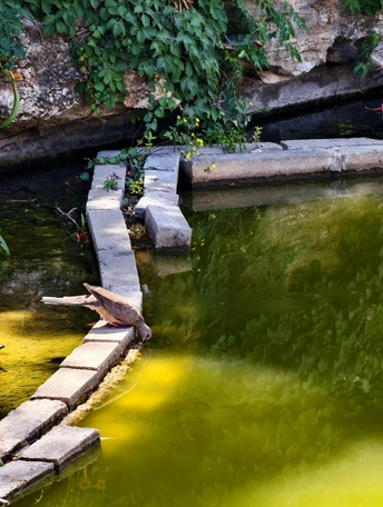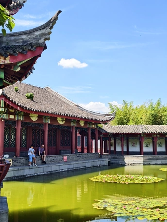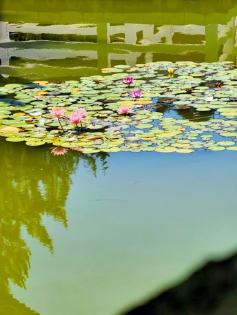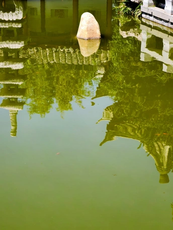 一池绿水如镜,揽尽古建风姿,飞檐翘角、亭台楼阁,在涟漪里晕染成画。 红鲤划破静谧,搅碎满池光影,睡莲撑着粉白小伞,挨着圆叶漂浮,连小鸟都来凑趣,踱步石间,偷看鱼儿戏耍。 蓝天透过枝丫洒下,给黛瓦朱栏描一层亮边,微风掠过,吹皱水的绸缎,也吹软了心。 在这里,时间慢成涟漪,喧嚣被绿波滤净,只剩古意悠悠——原来中国人的浪漫,是让建筑枕着流水,让自然住进园子里,每一眼都是岁月酿的诗,醉了盛夏,也醉了看客。