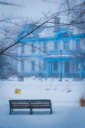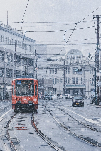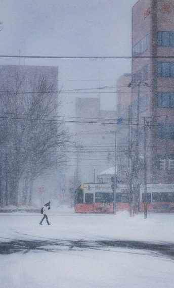 雪片簌簌扑向街面, 旧路灯把光晕泡在雪里, 连呼吸都凝成了白汽。 电车碾过积雪的声响很远, 近处只有靴底碾碎冰晶的脆响, 和自己的心跳撞个满怀。 檐垂着透明的冰棱, 把天空裁成细片, 每一片里都晃着北海道的慢。 雪落够了就停在肩头, 街景在睫毛上结霜, 恍惚间, 连时光都冻成了安静的模样。