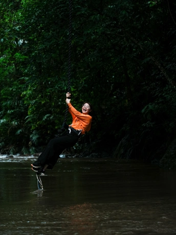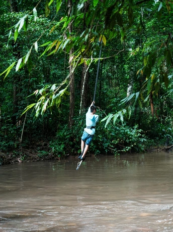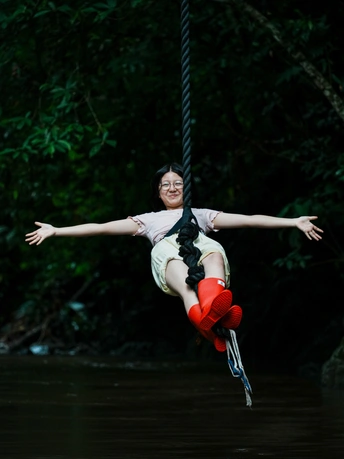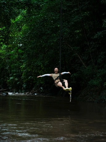 如果你也和我一样, 厌倦了千篇一律的网红打卡地, 那一定要来西双版纳的勐远仙境, 在雨林深处荡秋千,在树冠之间飞索滑翔, 这里的刺激和浪漫,只属于这片真正的“绿野仙踪”。 ?雨林秋千 是原始雨林里的限定浪漫, 坐上去的那一刻, 你会明白“空中飞人”原来不是特技,而是放空。 ?雨林溜索 不止是速度与风声, 而是从高空滑过雨林的树冠, 在翠绿之间穿梭,每一秒都像是飞翔在电影画面里! ?这里没有城市的喧嚣, 只有风、雨林、飞翔和自由, 真的,一定要来一次!