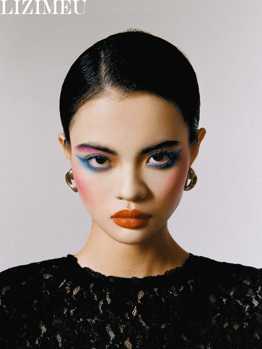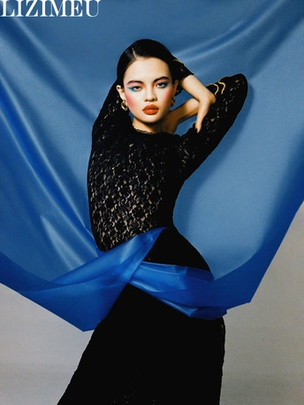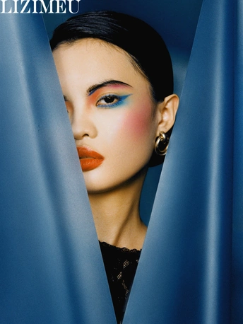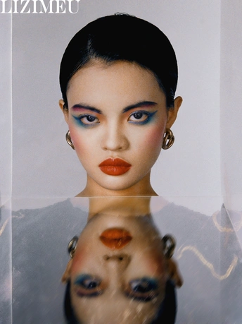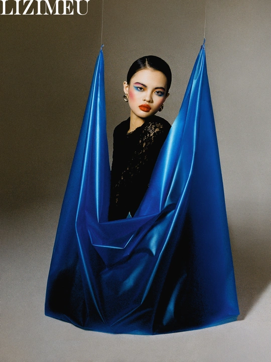 一组以蓝色塑料模和亚克力框做道具拍摄的人像 依旧是用的胶片拍摄形式 时尚感拉满