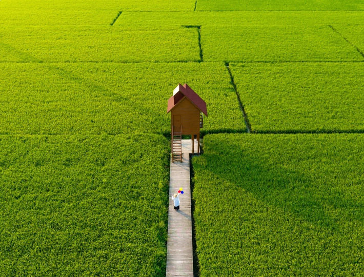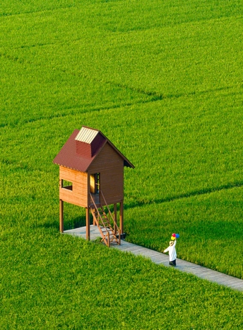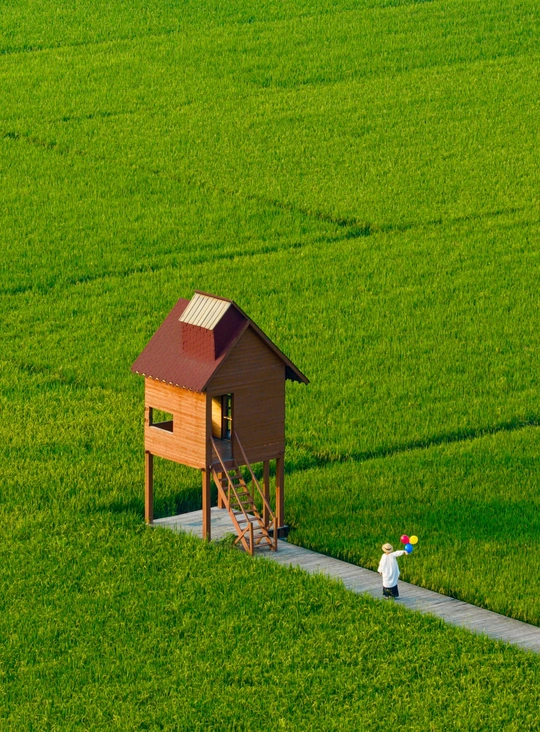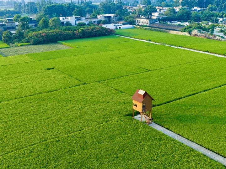 就在成都周边,这里有超大片整整齐齐的绿油油稻田和童话小木屋,清晨的阳光下感受夏天的清爽,仿佛闯入宫崎骏的浪漫夏天!