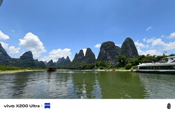 碧水蓝天,山峦叠嶂。在这片静谧的山水画卷中,喀斯特地貌的壮美与江水的温柔相映成趣。远处的小船静静停泊,仿佛时间在此凝固,让人沉醉在这份难得的宁静中。#山水如画 #心灵栖息 #自然奇观