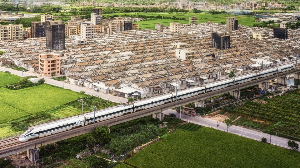 动车与潮汕民居下山虎同框