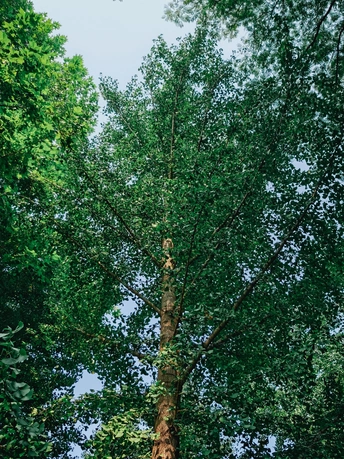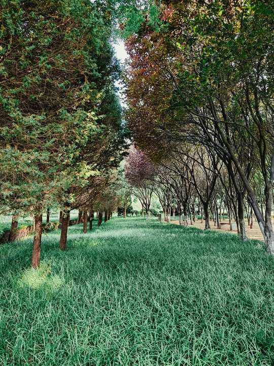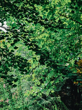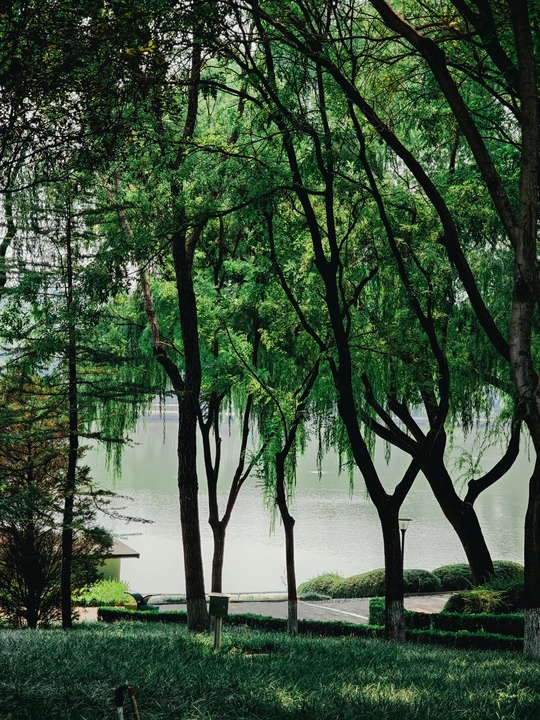 赤日铄金, 空园锁碧。 虬枝覆径, 素影涵虚。 披襟荫下, 濯足尘余。 炎光自煎, 坐忘须臾。
