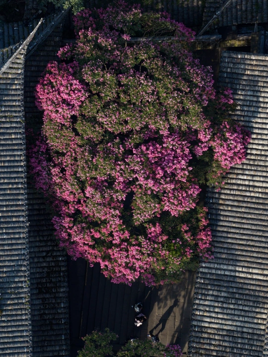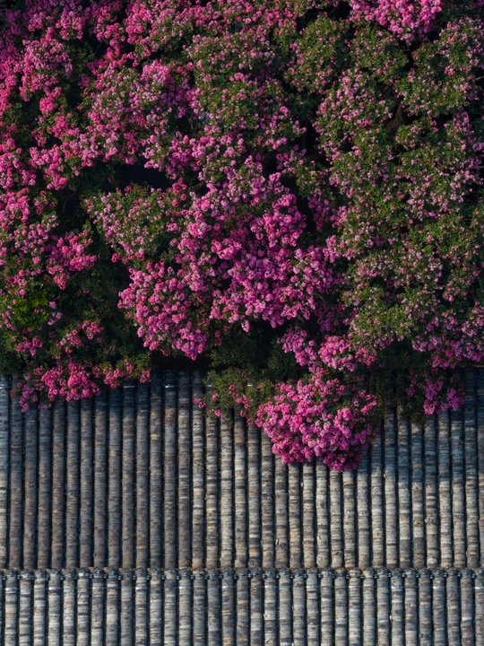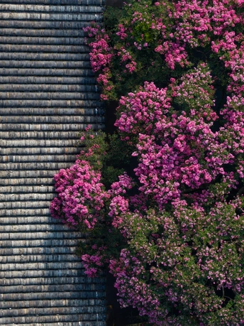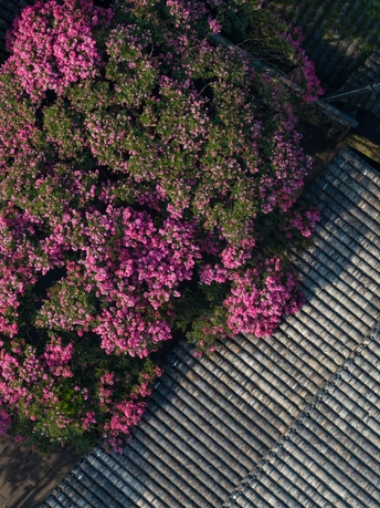 都江堰景区伏龙观千年紫薇花盛开