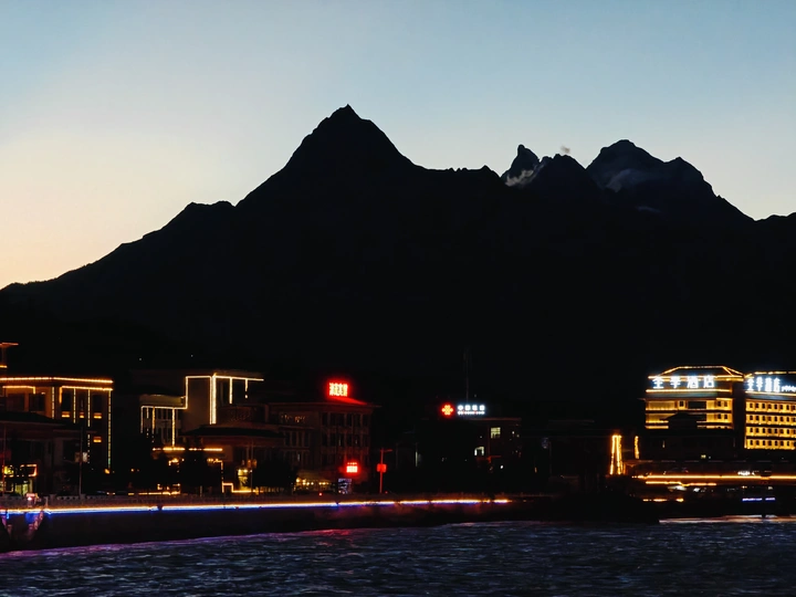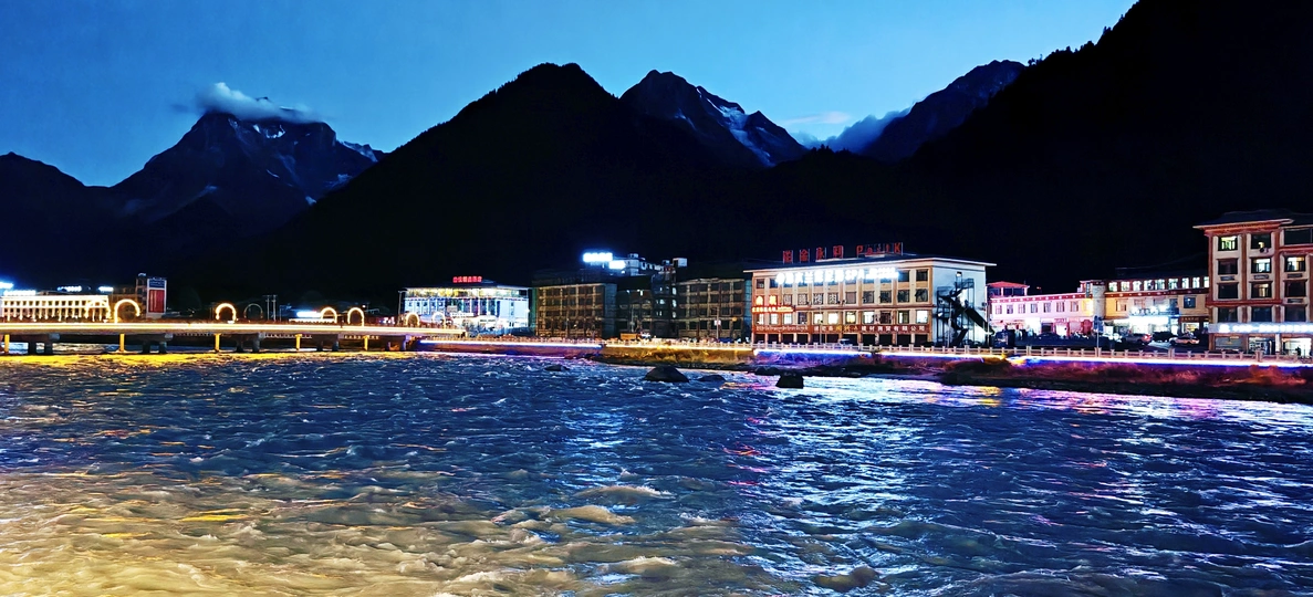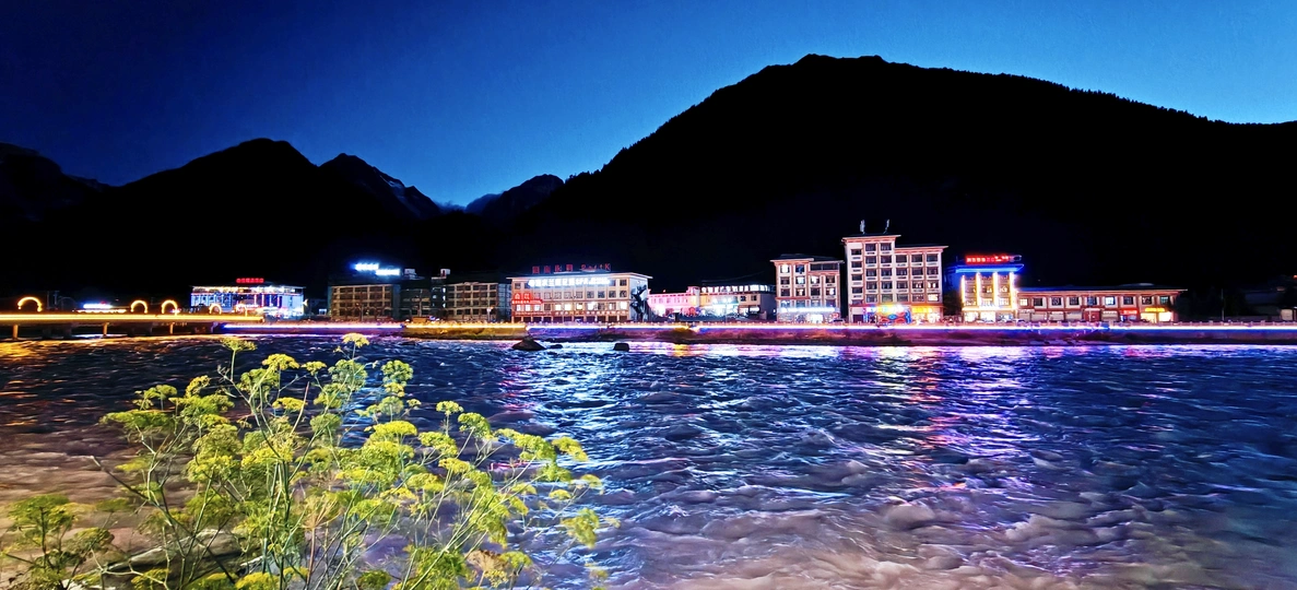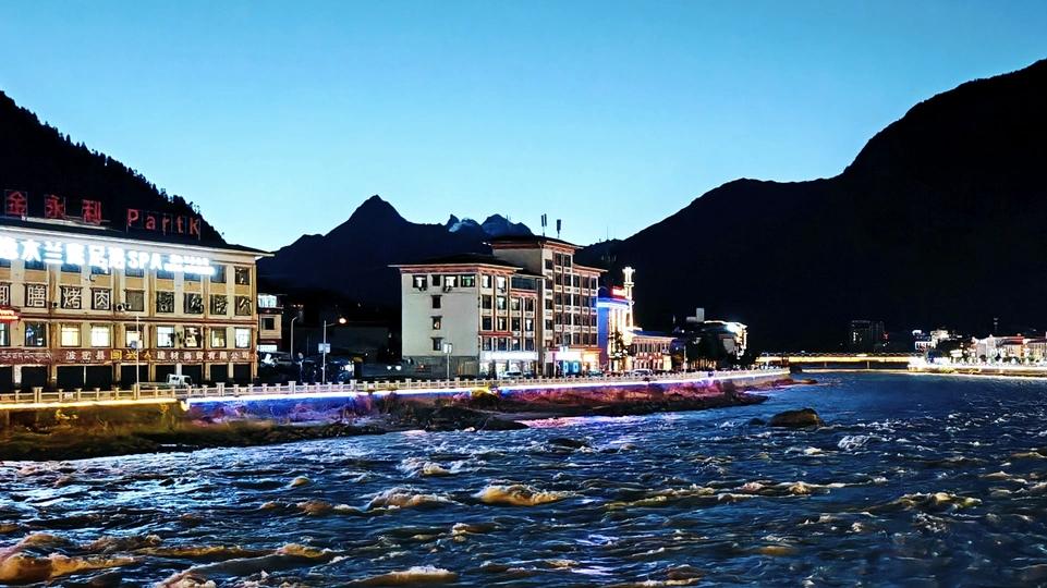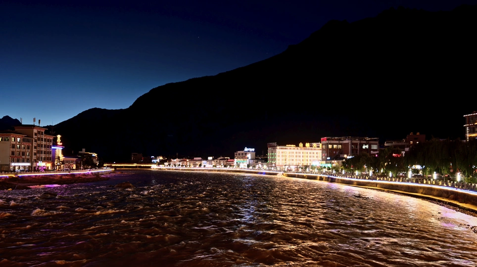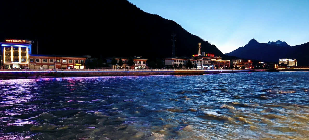 波密县城内一条喘急溪流河穿城而过,从它露出表面的岩石来看应该不深但流速迅猛人处其中应该是站不住脚的,且溪流碰撞岩石声响在晚上听来就象似一曲交响乐曲特别治愈疲惫的身体。