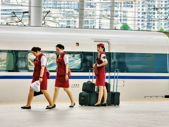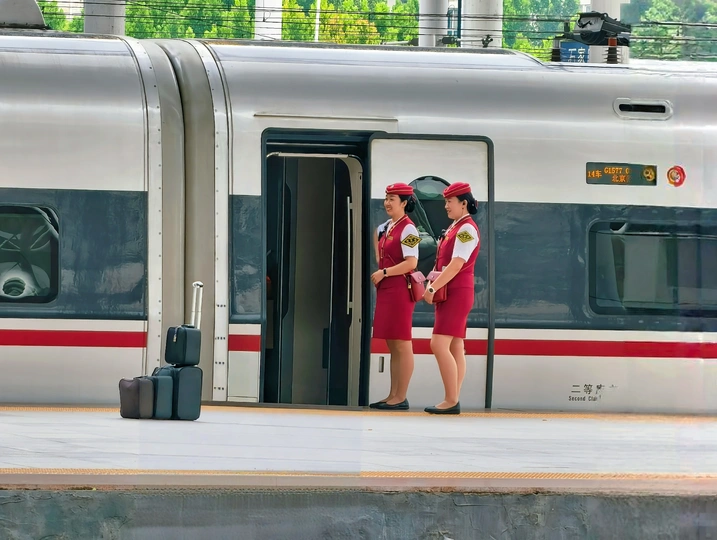 在远距旅途中,本是枯燥乏味的空间生活,但是婧丽的美影加上鲜艳的着装在空间穿索或在站台上在门口执勤打破了乏味的眼疲劳,增添了青春的活力氛围感,使旅途多了几分韵味。
