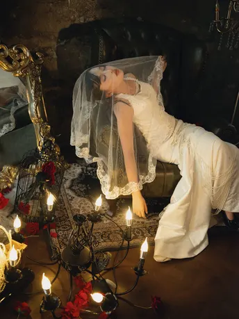 其实还不够疯批,让模特用枪指着自己的时候,旁边拍照的男摄大哥表示很不理解。