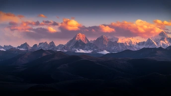 拍摄于格迪拉姆的日落时分呈现的是壮丽的雪山景观。在黄昏时分,连绵雪山被夕阳染成暖色调,与天空中橙粉相间的云朵、深色的山峦层次交织,光影变幻间尽显大自然的雄浑与壮美,宛如一幅气势恢宏的山水画卷 。尼康z62 光圈f8 快门1/250 iso 320