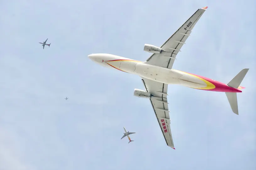 四架飞机都从头顶飞过并同时聚在了镜头中也许这就是大城市的魅力吧