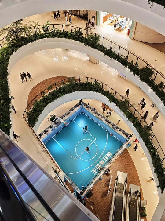 从高空俯瞰,篮球场如同一口沸腾的深坑,少年们跳跃的身影在白色线条间穿梭,汗水与呐喊交织成青春的交响曲。
