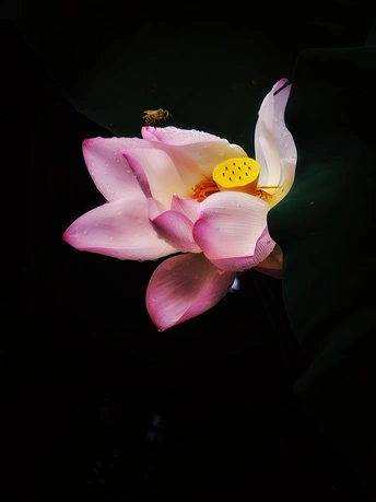 暗调天际下,荷茎托举的不仅是花盏,更是凝固的火焰。雨痕在花瓣刻下水墨纹路,蜜蜂循着光斑导航,将金箔般的阳光酿进蜂巢。每一帧都是工业光魔与自然之笔的博弈。