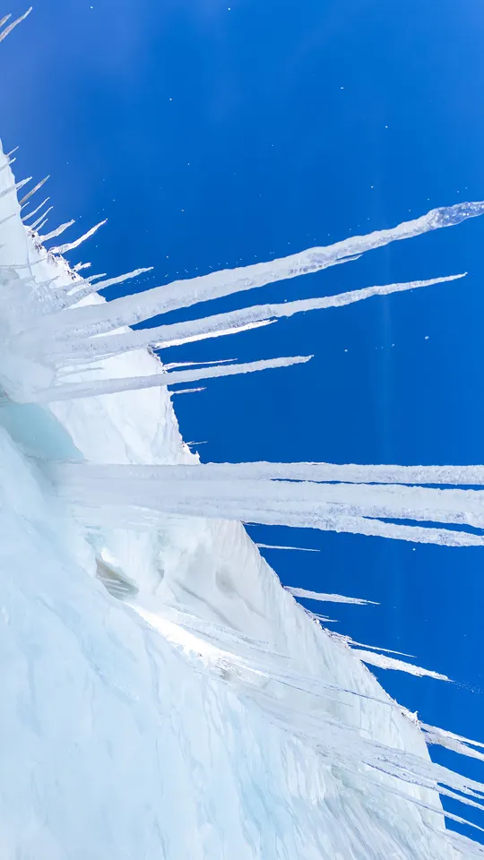晶莹的冰柱, 像是冬日的羽毛笔, 在寒风中书写着光与影的诗。