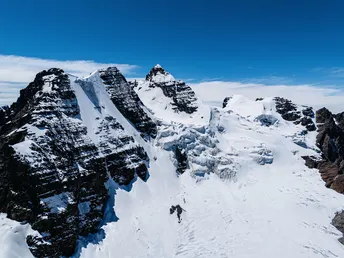 Ventanani”(又称 Wintanani) 是属于 Cordillera Real(皇家山脉) 中一个海拔约 5 428 米 的山峰名称,而 Laguna Glaciar Ventanani 是其附近的冰川湖,海拔大约 5 080 米 Ventanani 湖水碧蓝如镜,水面上漂浮着冰块,湖岸可见由冰川雕刻出的冰洞与悬挂的冰柱,是绝佳的摄影场景