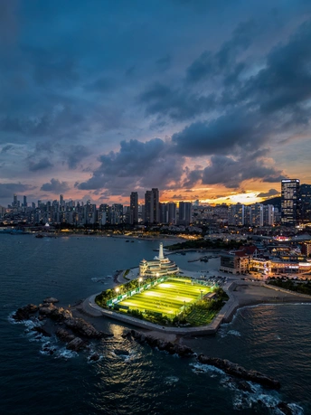 摄于8月12日史诗级火烧云后,青岛极地海上足球场