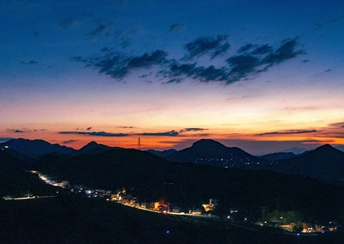 夕阳缓缓下落,村子渐渐亮起来,好像天上阳光被打碎了,散落到每一户人家变成了灯火