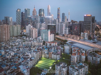 高冷的CBD,球场的放松,集中在一个画面里,体现了广州整个城市的包容性。